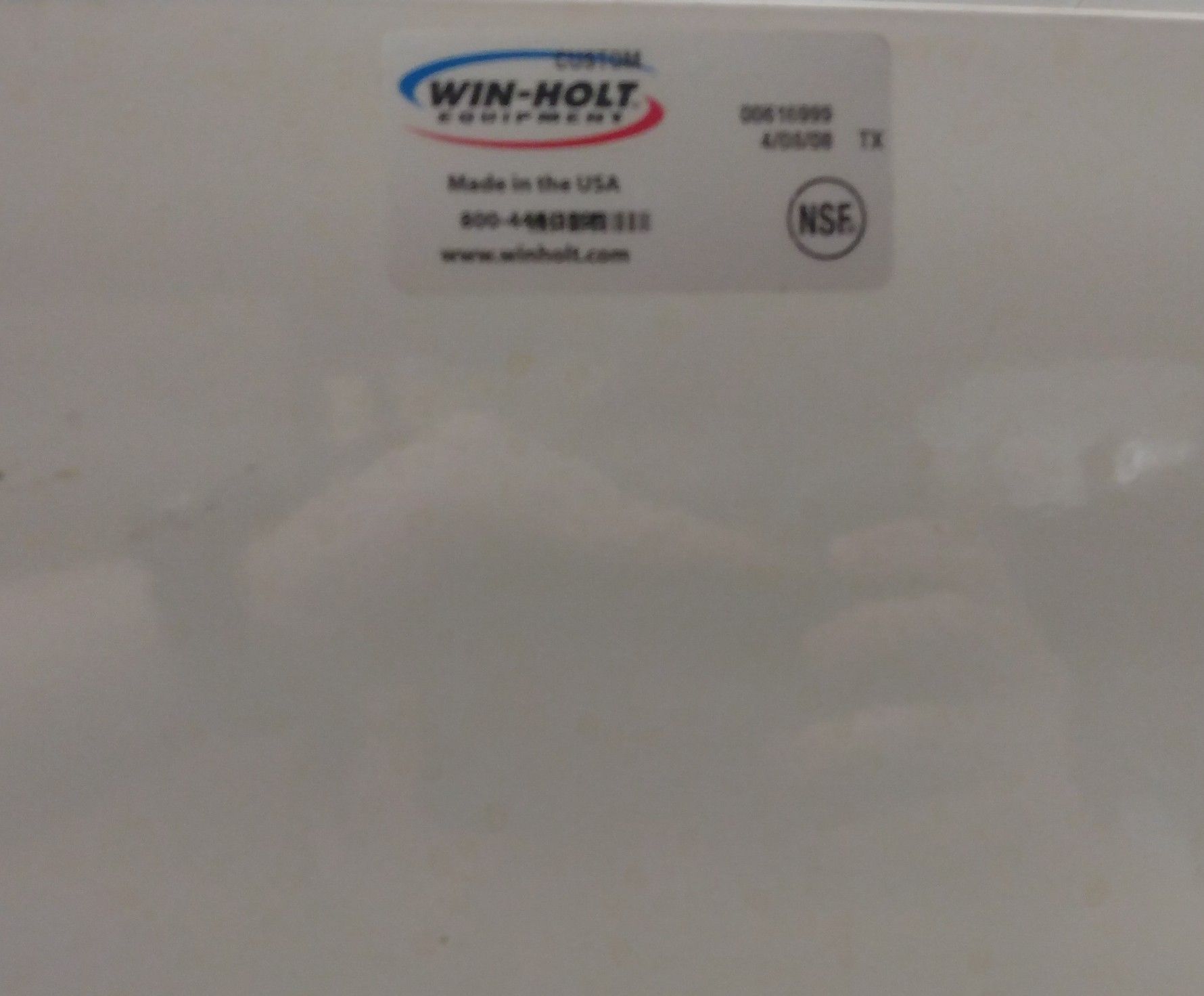 The product information sticker reveals little, if even any, information about this item- save for the possibility of this cabinet being custom-made (CUSTOM is stamped in the blue part of the Win-Holt logo).