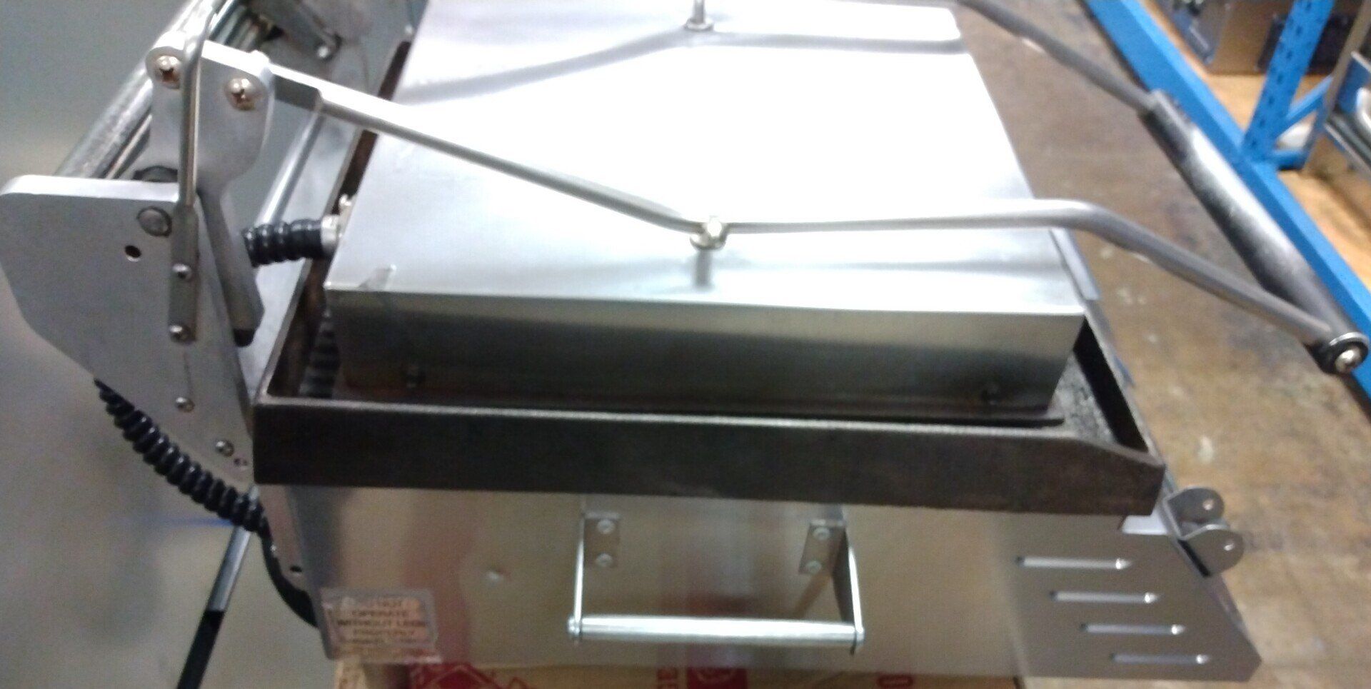 Vacuum sealer for packaging food. Has an acrylic lid over an 11 1/2" x 11 1/2" chamber.
